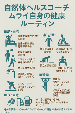 わたし自身も日常であまり過剰な負荷のないコツコツ健康ルーティンを続けています。
